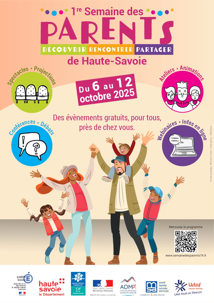 La 1re Semaine des Parents de Haute-Savoie se tiendra du lundi 6 au dimanche 12 octobre 2025.