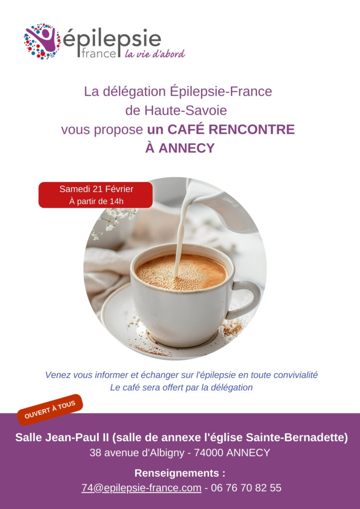 « La délégation locale Epilepsie France Haute-Savoie vous invite à un café-rencontre convivial, ouvert à tous, pour s’informer, échanger et poser vos questions autour de l’épilepsie, dans un cadre bienveillant :